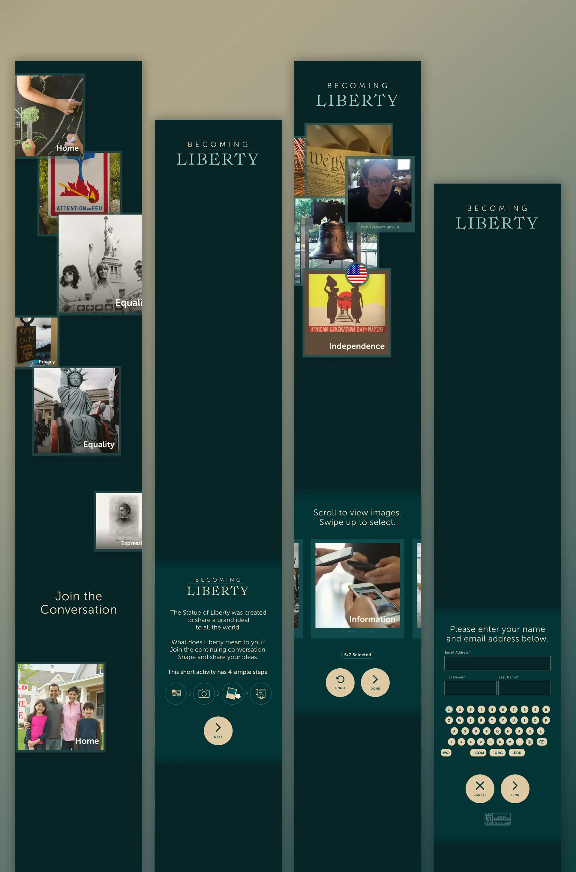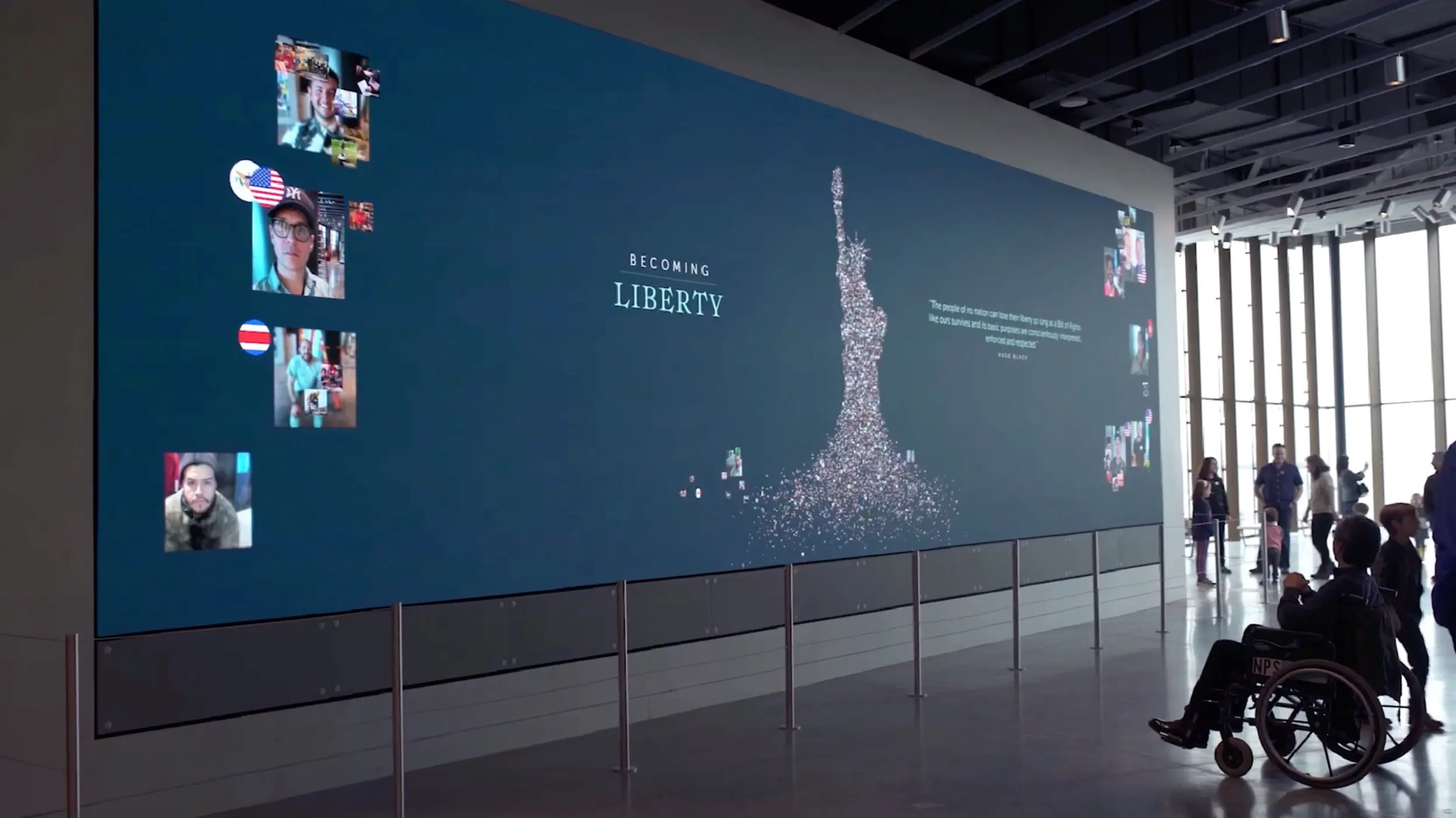 Le troisième interactif, et sans doute le plus impressionnant, est une installation d’une dizaine d’écrans mesurant environ 10 pieds de haut. Le mobilier intègre également trois caméras placées à différentes hauteurs. Les visiteurs sont appelés à répondre à quelques questions sur ce que représente la liberté pour eux. Une fois que cela est fait, une photo du visiteur est prise, envoyée à l’API de Google afin de valider que le contenu est approprié et cette photo monte ensuite dans le haut de l’écran avant d’être finalement diffusée sur un écran géant en temps réel. La photo du visiteur fait maintenant partie d'une mosaïque d’images et la discussion sur la Liberté peut continuer.