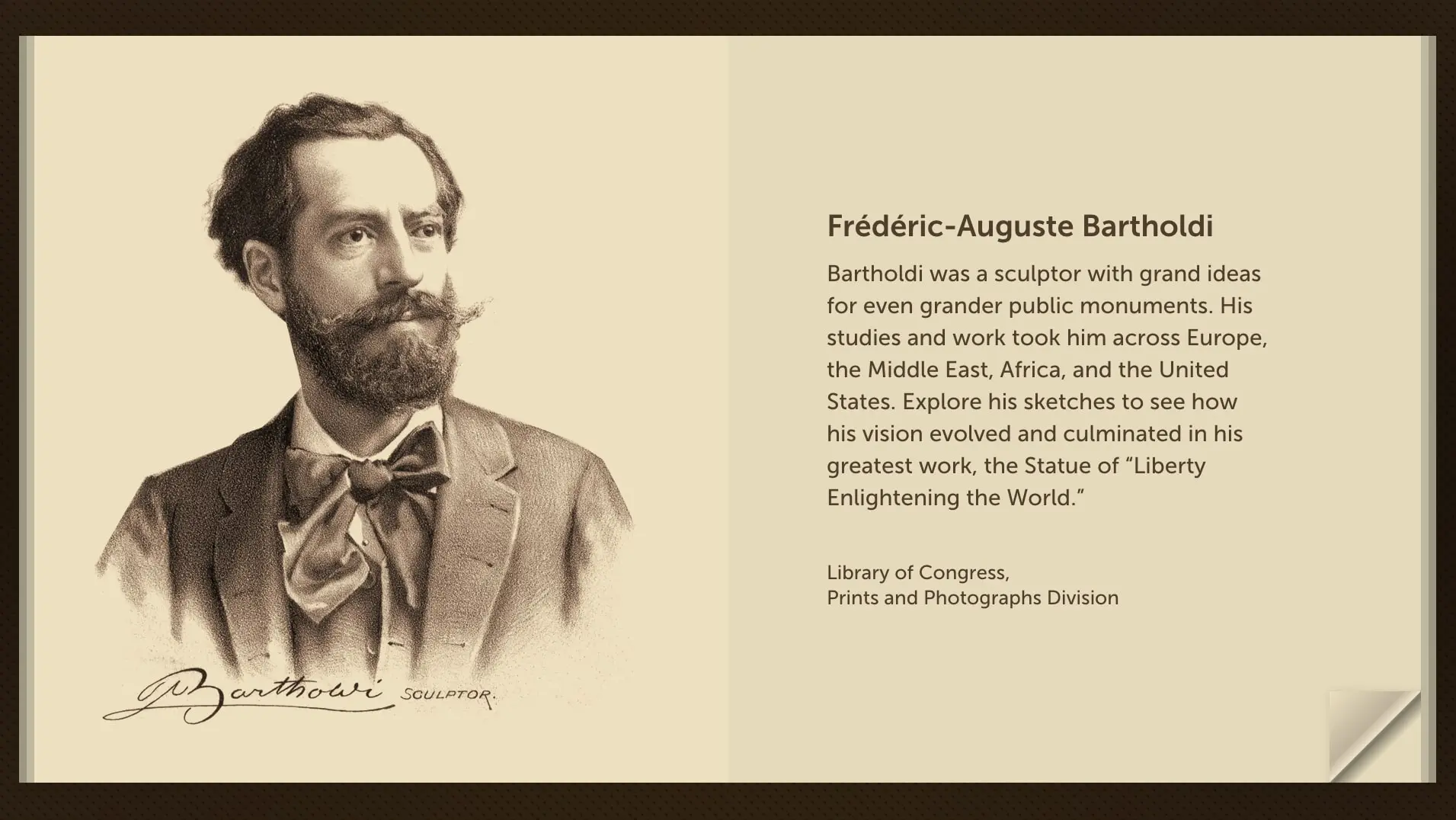 Le premier interactif est un écran tactile intégré au mobilier et transformé en livre numérique sur Auguste Bartholdi, l'artiste derrière la conception de la Statue de la Liberté. Le succès de cette installation repose sur les détails visuels et animations fluides intégrés avec rigueur par notre équipe.