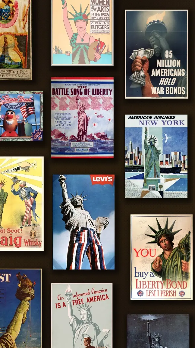 Le deuxième écran de trois pieds par cinq pieds est une mosaïque d’images d’archives représentant la Statue de la Liberté dans l’imagerie collective. On y retrouve des affiches de films, de séries, des publicités et des couvertures de livres et de magazines de toutes les époques. La plus grande difficulté de cette station a été de réaliser la boucle infinie de cette mosaïque tout en maintenant une expérience parfaite dans les transitions.